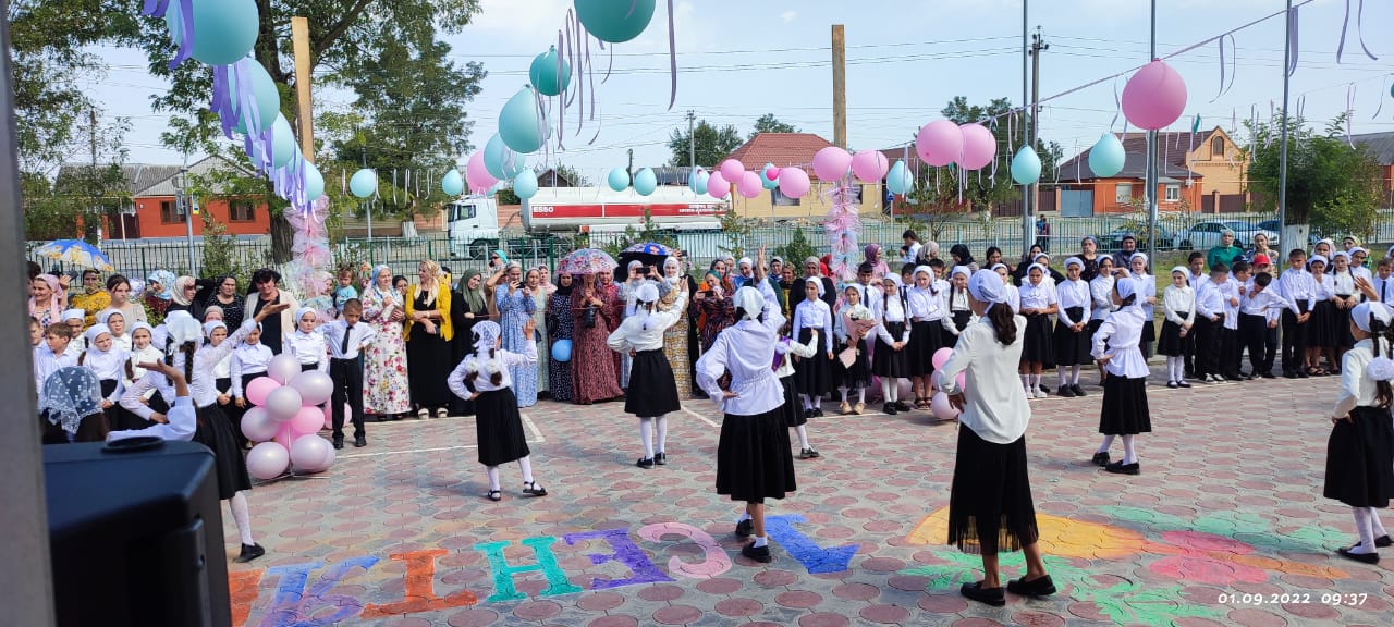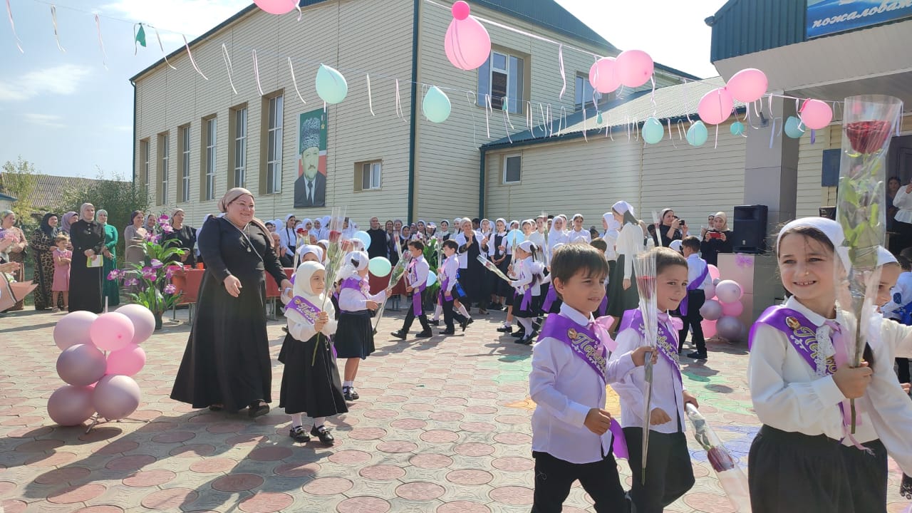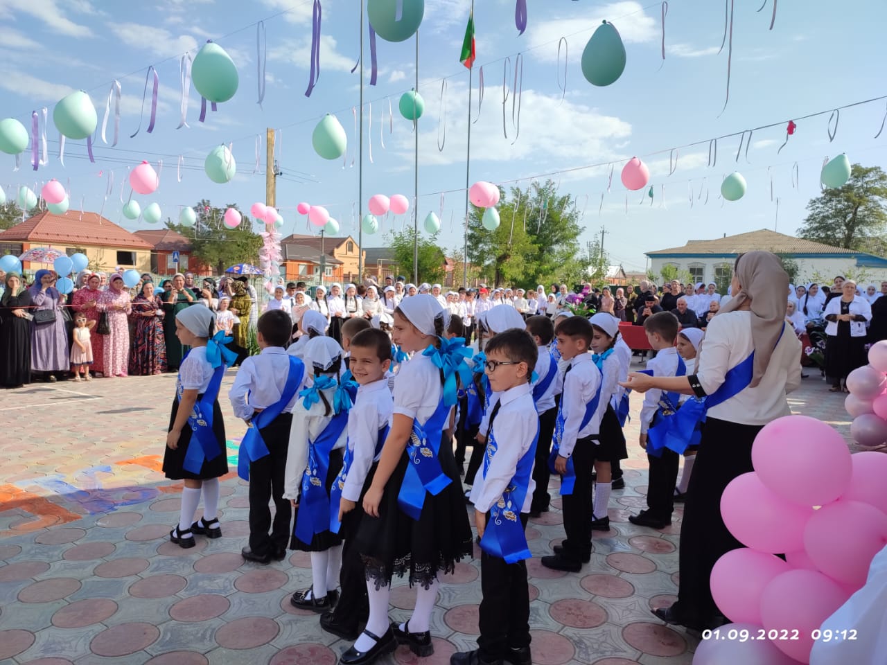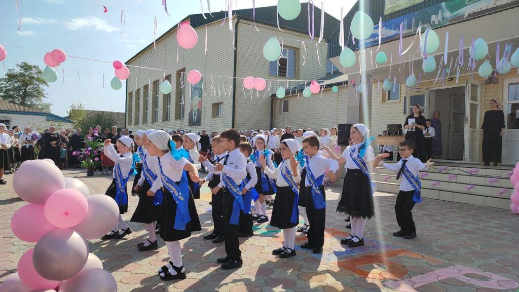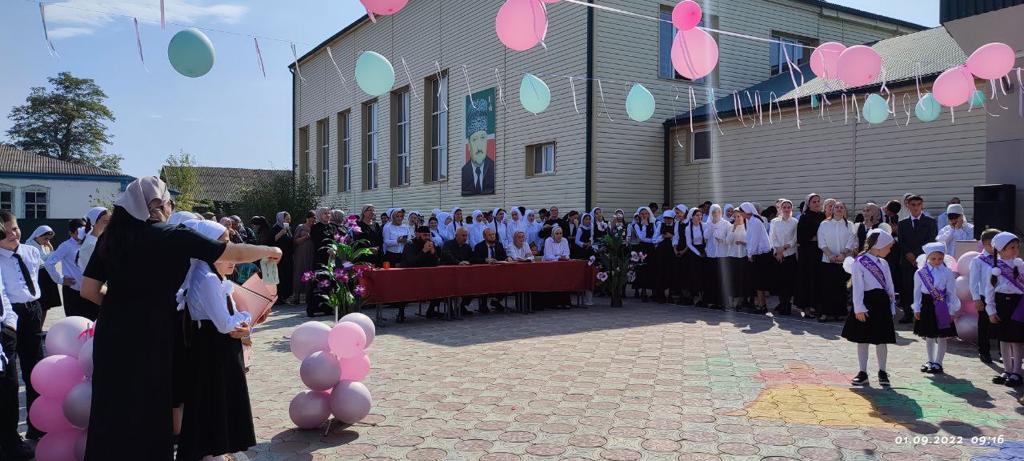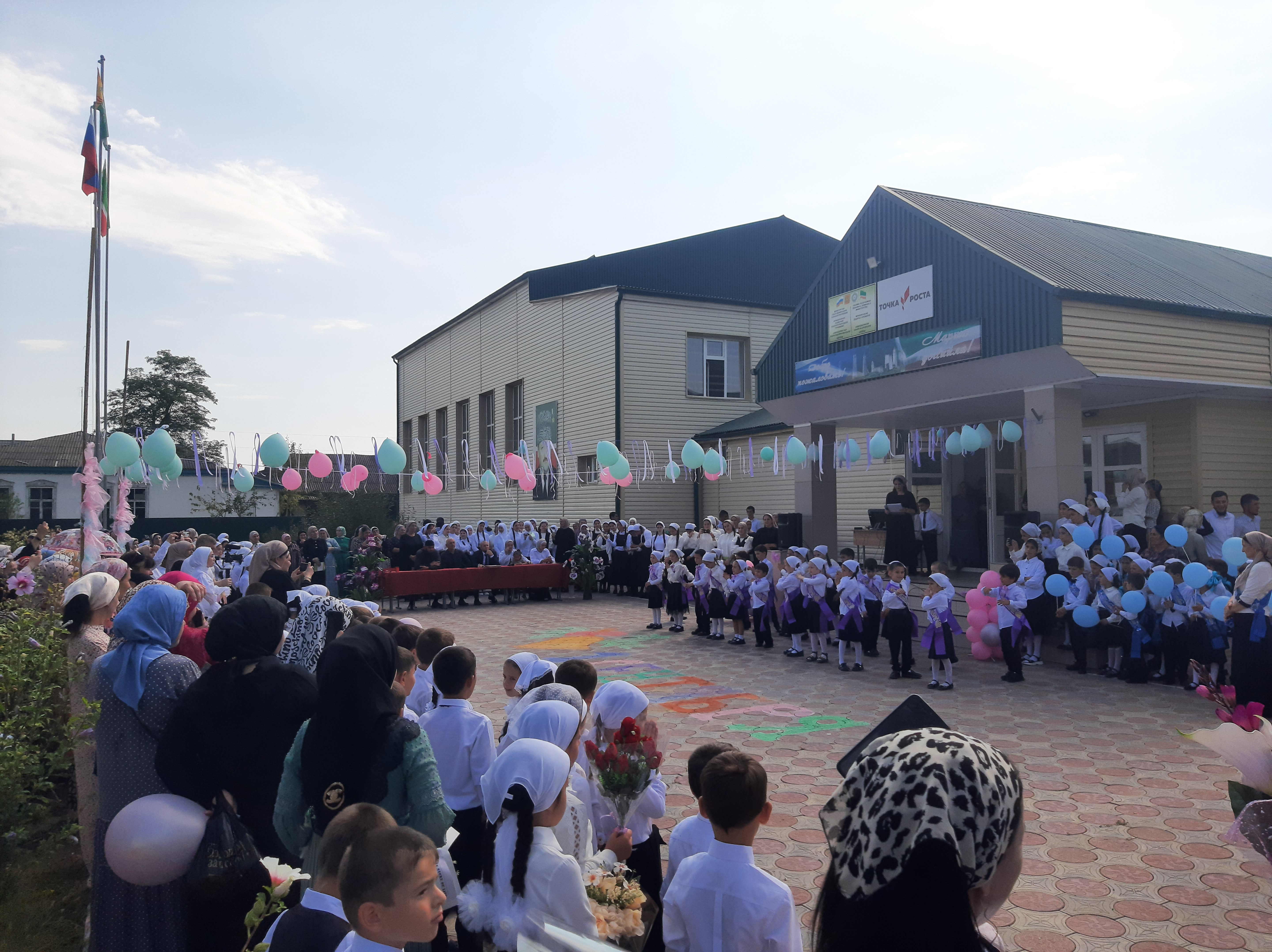 1 сентября нового учебного года состаялась торжественная линейка посвященная Дню знаний. Линейка началась с торжественного звучания гимнов РФ и ЧР и поднятия флагов. С торжественным словом выступали гости, администрация школы, родители.