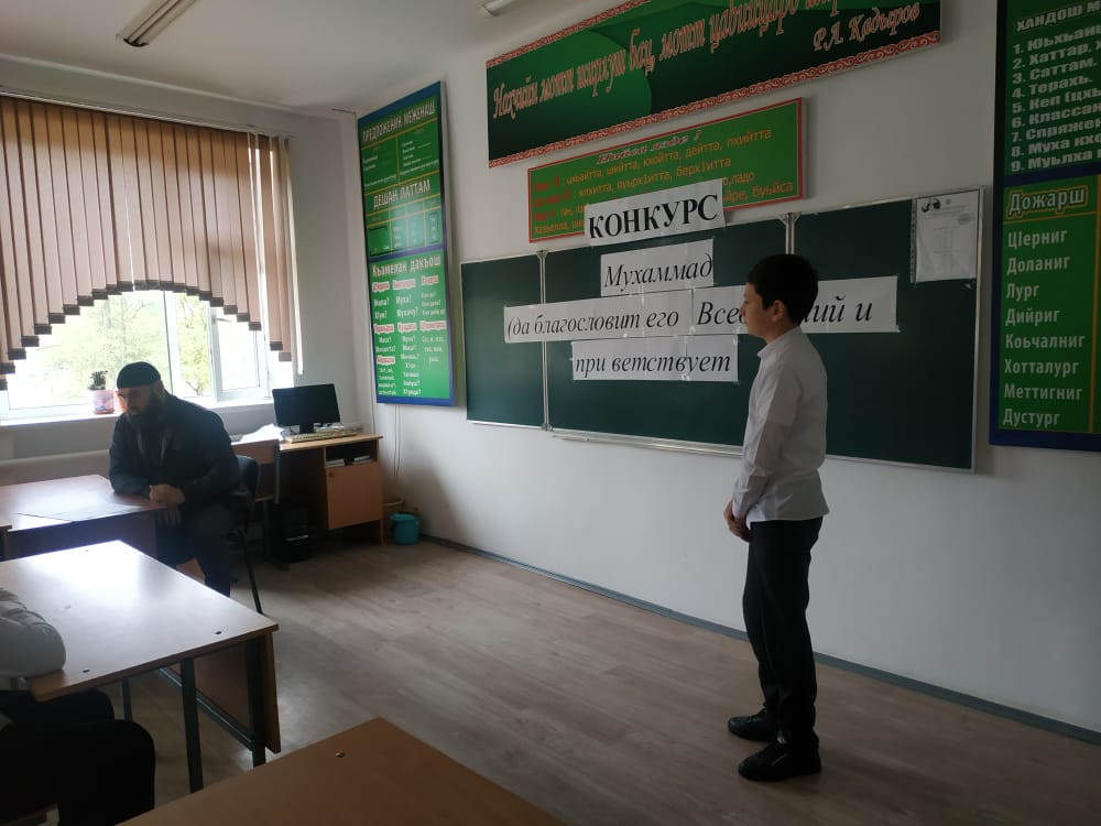 Конкурс проводился среди учащихся 5-11 классов. В мероприятии приняли участие особо отличившиеся от класса. В результате финалистом конкурса вышел Шамилов Юсуп, ученик 9 Б класса. Теперь мальчик поедет на муниципальный этап. Желаем Юсупу удачи и праведных знаний.