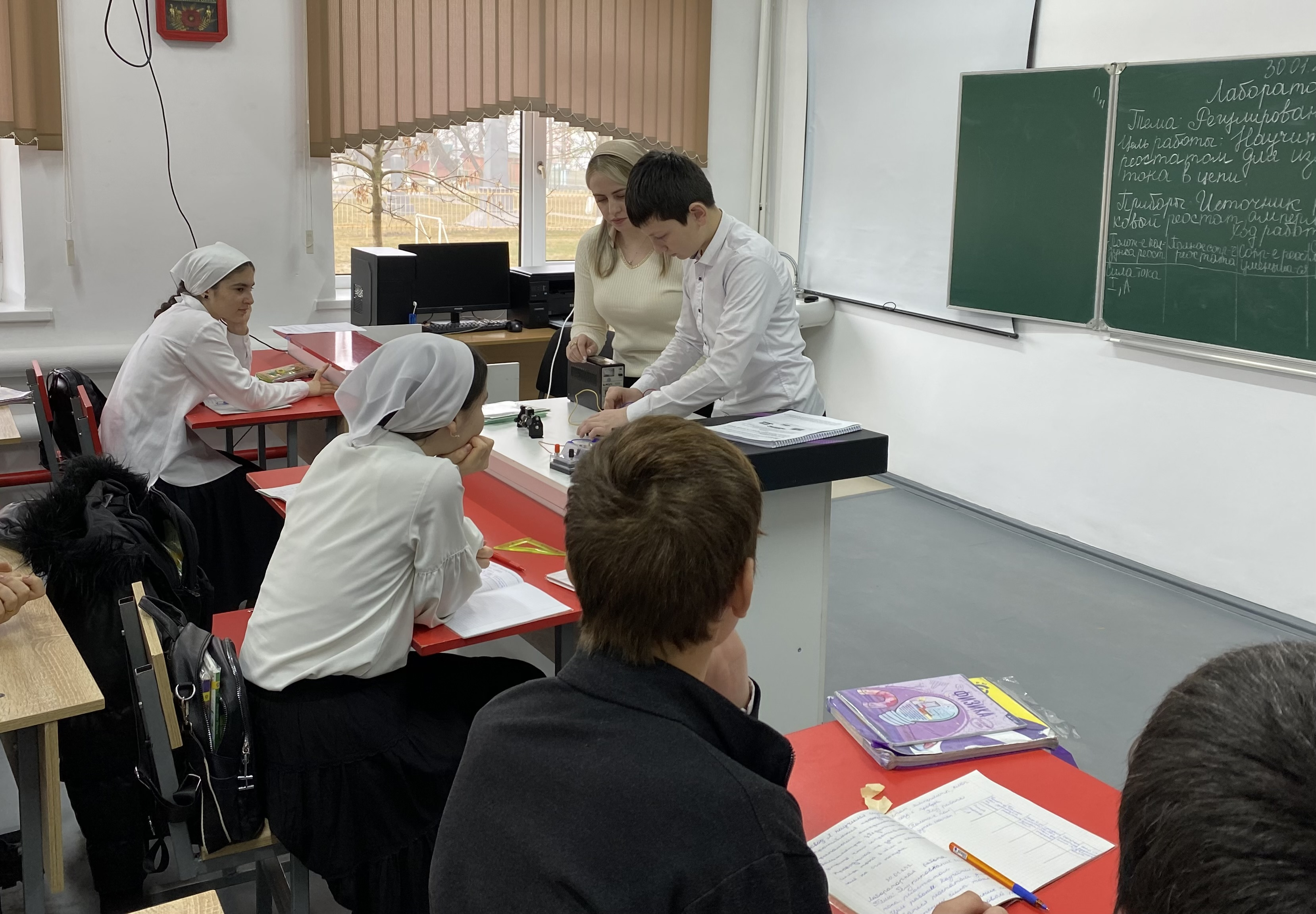 30.01.2023 года учитель физики Эскиева Седа Махмудовна, при прохождении раздела «Электрический ток», провела в 8 «А» и 8 «Б» классе лабораторную работу на тему: «Регулирование силы тока реостатом», по итогам которой учащиеся научились применять теоретические знания на практике, и выводить из экспериментальных фактов теоретические физические законы.