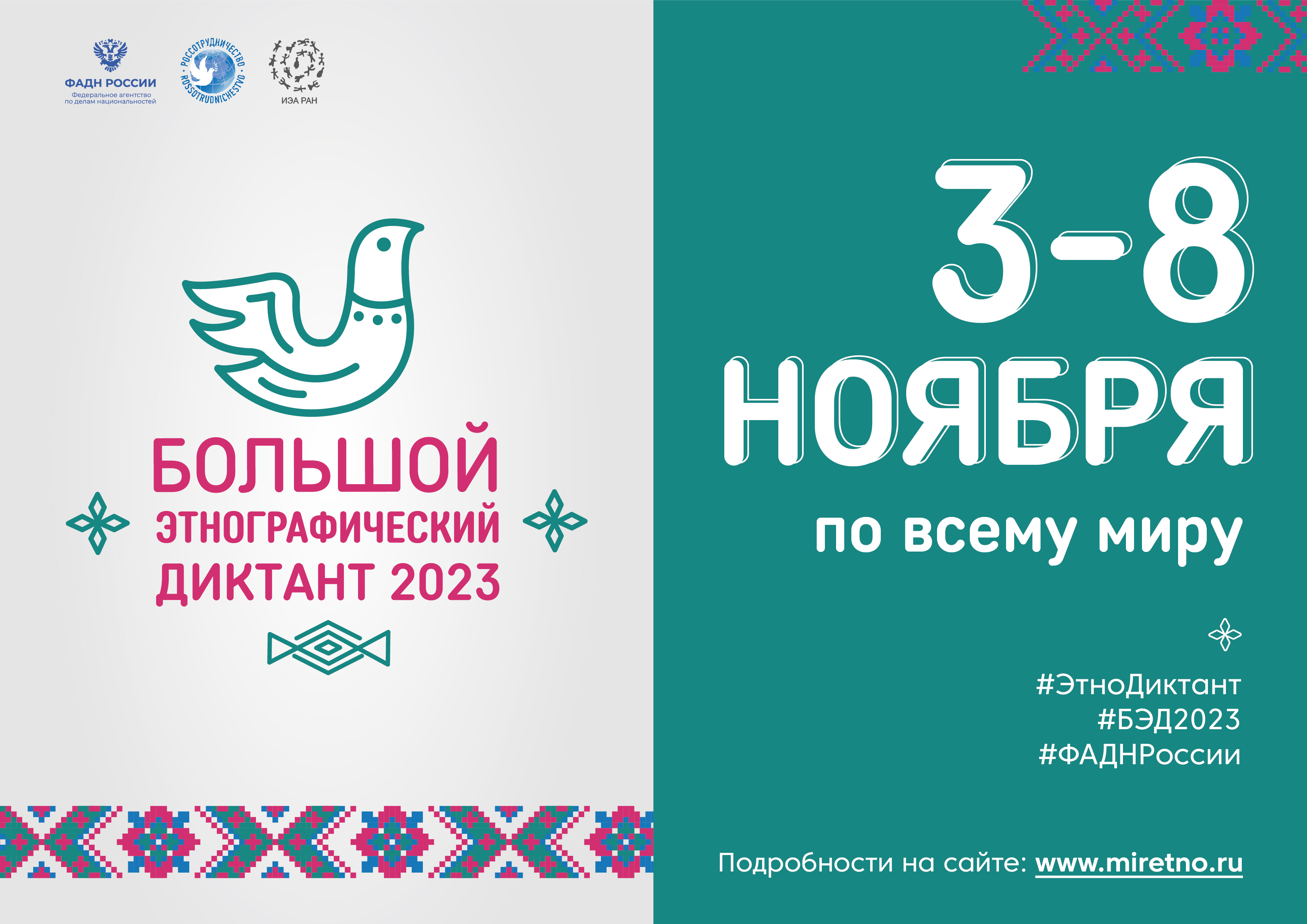 03.11.2023С 3 по 8 ноября все желающие смогут стать участниками Международной просветительской акции «Большой этнографический диктант», который пройдёт в онлайн-формате на сайте http://www.miretno.ru.