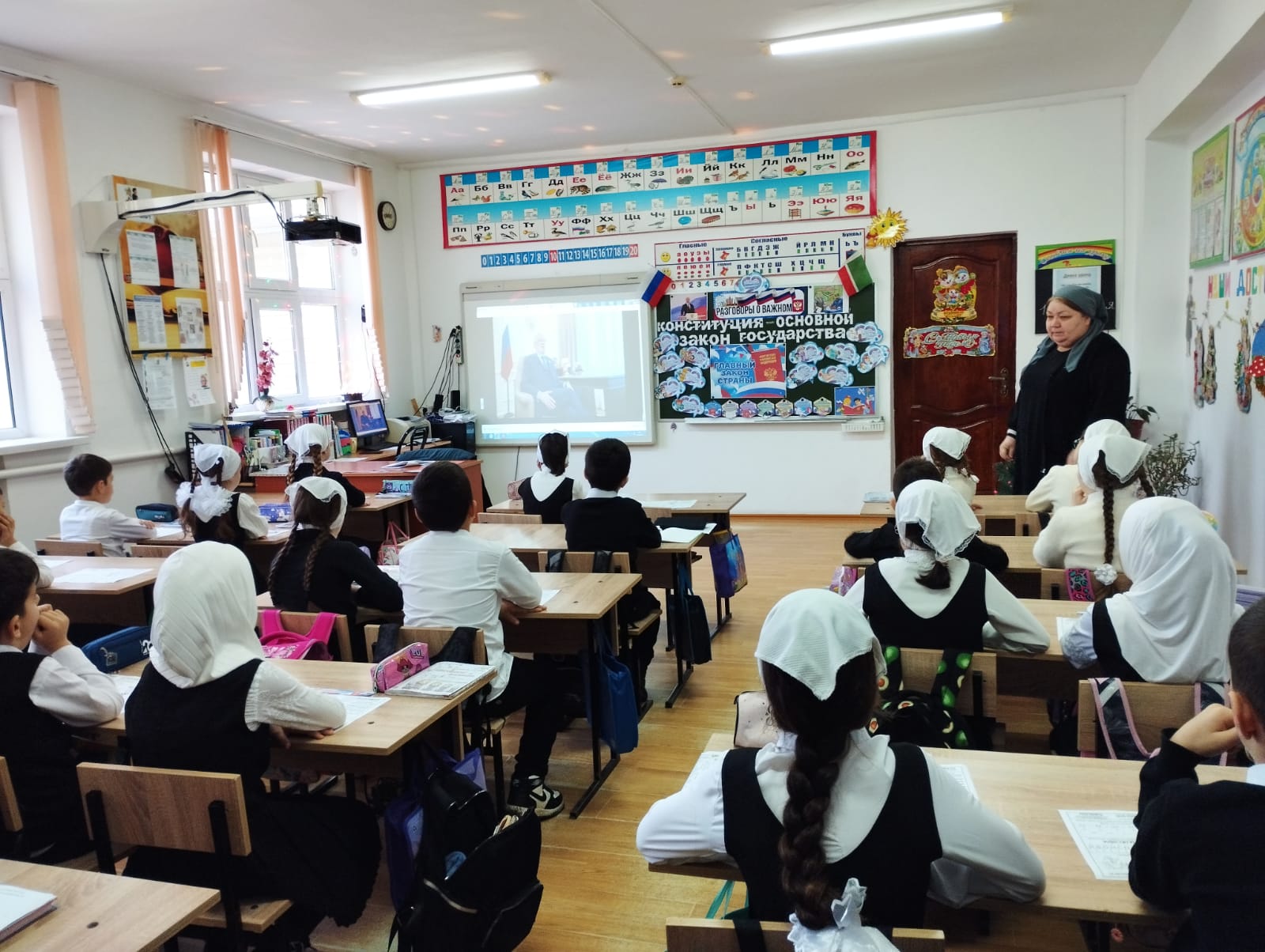 На РОВ говорили о том, что такое Конституция, для чего она нужна. Какие основные права и обязанности граждан закреплены в этом документе. Так же урок предполагал выполнение интерактивного задания – назвать, какие права героев нарушены в сказках и произведениях для детей, с которым ребята спрвились на Ура.