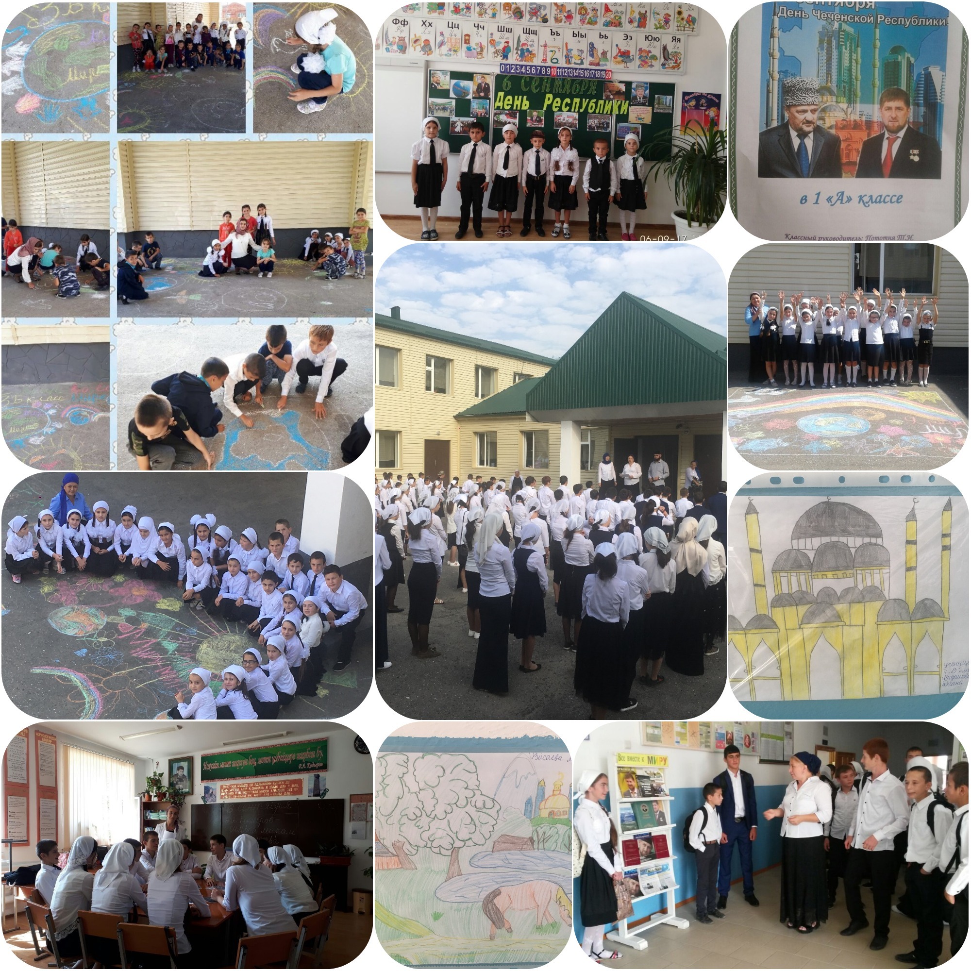 В Новощедринской СОШ провели ряд мероприятий посвященных дню чеченской Республики. Сюда вошли и круглые столы, и выставка книг, и рисунок на асфальте, торжественная линейка и др...