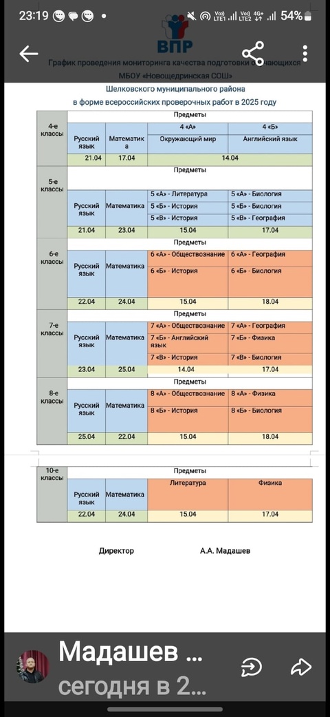 14.04.2025В школах Чеченской Республики с 11 апреля по 16 мая проходят всероссийские проверочные работы для обучающихся 4–8-х и 10-х классов. ВПР проводятся для мониторинга уровня подготовки обучающихся согласно федеральным стандартам. Время выполнения – один или два урока (до 45 минут каждый).Результаты ВПР могут быть использованы для текущего контроля успеваемости и промежуточной аттестации, а также для анализа состояния системы образования и совершенствования преподавания.
