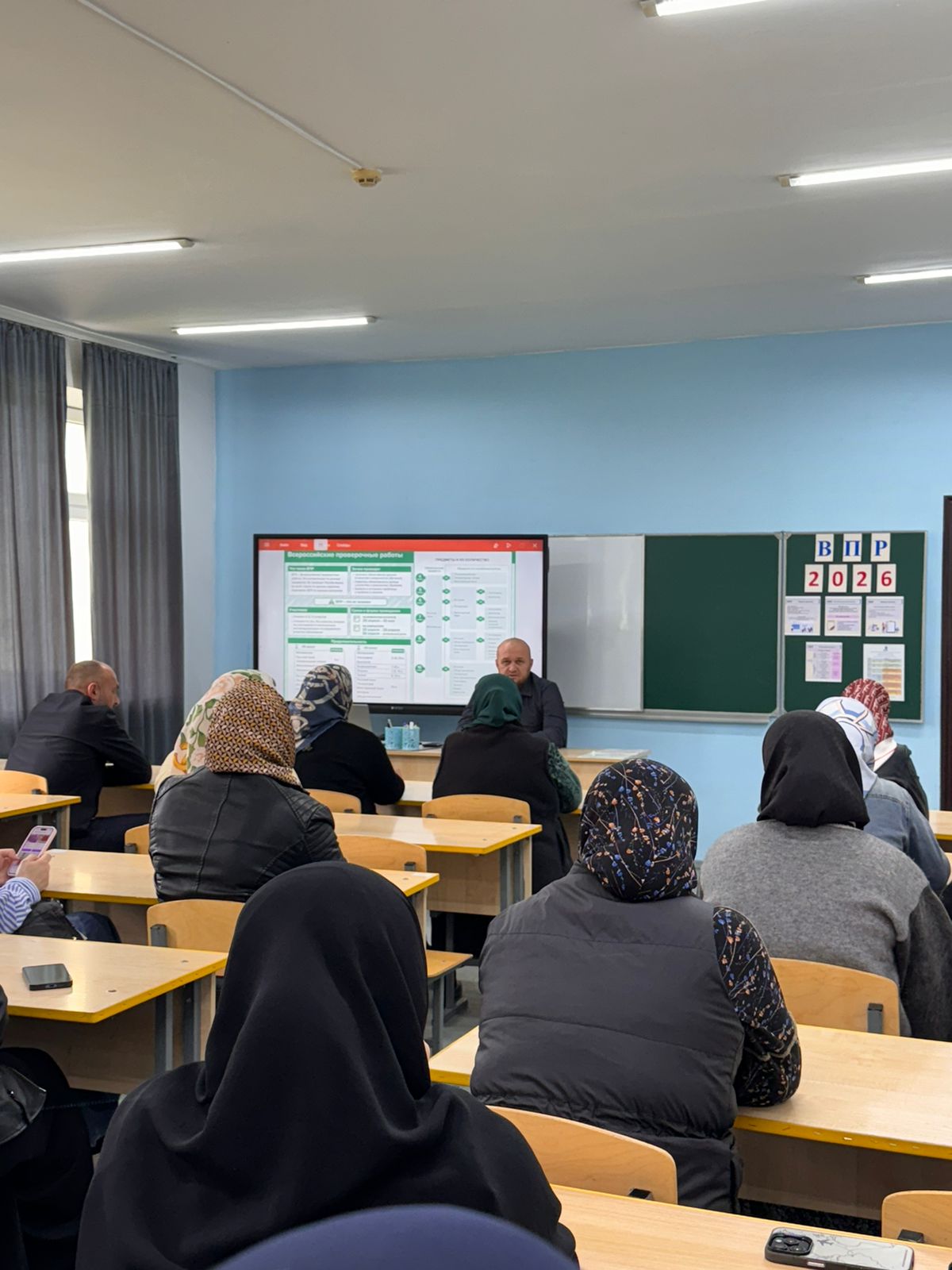 На общешкольном родительском собрании, посвященном Всероссийским проверочным работам (ВПР), директор школы Асхаб Асламбекович обсудил с родителями важность этих экзаменов для оценки уровня знаний учащихся. Он подробно рассказал о формате проведения ВПР, а также о том, как школа готовит учеников к успешной сдаче этих работ. Родители получили возможность задать вопросы и выразить свои мнения, что способствовало открытому и конструктивному диалогу.