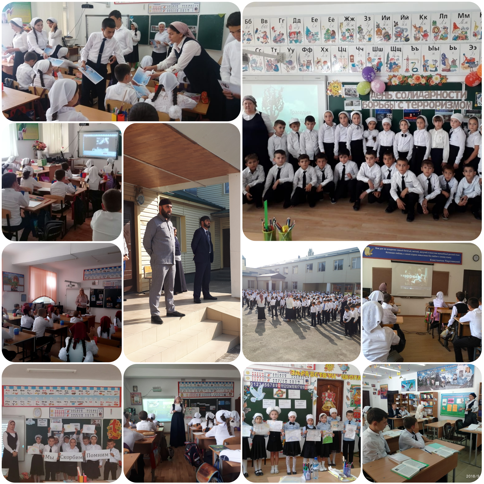 03.09.20183 сентября в нашей школе прошли мероприятия посвященные Дню солидарности в борьбе с терроризмом. Учащиеся, коллектив и гости вспоминали о страшных событиях происшедших в г.Беслане. Беседы, классные часы, просмотры видеофильмов никого не оставили равнодушным в этот день. Боль сильнее от того, что мишенью оказались дети. За погибших сделали дуа под руководством педагога по ДНВиР Акбернова З.М.