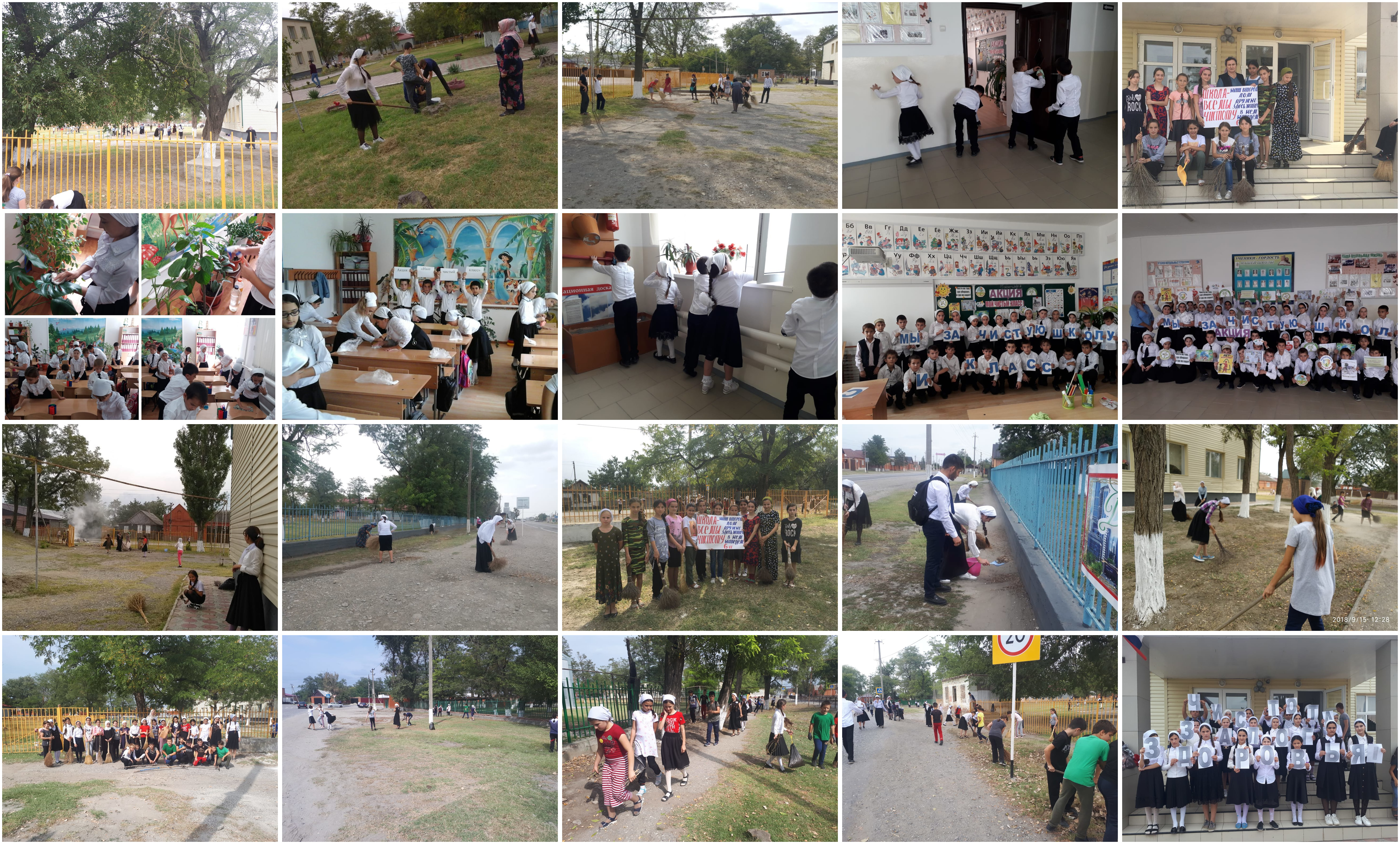 15.09.201815 сентября - День защиты окружающей среды и Всемирный день чистоты Главой нашей республики Кадыровым Р.А. объявлен "Общереспубликанским днем субботника". В указнный день и наша школа приняла участие в столь масштабном мероприятиии. Школьники, коллектив и технический персонал внесли свою лепту в дело чистоты окружающей среды. 15 сентября был организован масштабный субботник по уборке как школьных помещений так и прилегающей территориии. Никто не остался в стороне. Даже самые маленькие, наши первоклашки, потрудились на славу. Истину гласит народная мудрость, что коллективная работа сближает. Хотя первоначально школа и была разбита на сектор, как только началась работа границы были стерты, и все трудились помогая, выручая и поддерживая друг друга, как одна большая дружная семья.