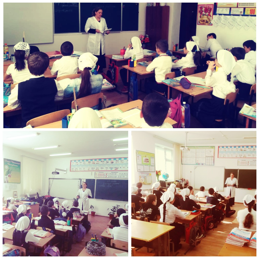 Мед. работником Муталиповой К. совместно с психологом школы Абумуслимовой К.Ш, проведены беседы в начальных классах по профилактике гриппа и ОРВИ. (охват 75учащихся )